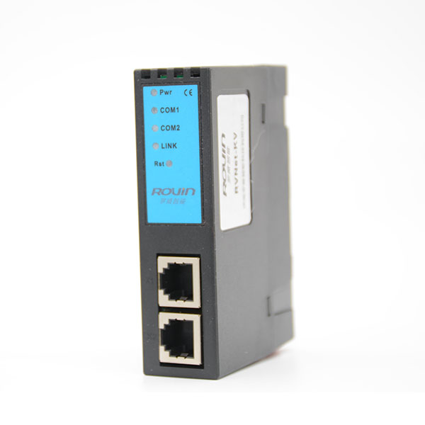 1、安裝在35mm的導軌上,COM1口直接連接至KV的RS232編程通訊口,并擴展一個COM2口用于觸摸屏通訊。RVNet-KV可直接從KV編程通訊口獲取電源,也可外接24VDC電源。