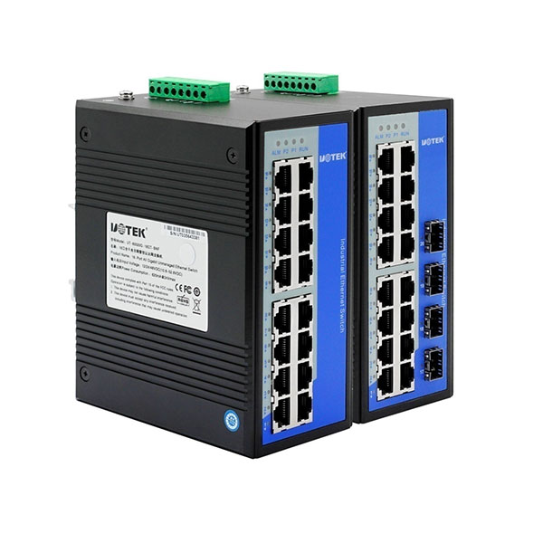 UT-60020G系列是非網管型全千兆以太網交換機,該系列采用模塊化設計,最高可達4路千兆光纖接口和16路千兆以太網電口,增強了網絡擴展的靈活性;該系列交換機采用低功耗、無風扇設計,確保無噪聲干擾,同時支持-40~75℃工作溫度和良好的EMC電磁兼容性能,保證在惡劣的工業環境中保持穩定的工作,為工廠自動化,智能交通,視頻監控等工業應用領域組建快速穩定的網絡終端接入網絡提供安全可靠的解決方案。